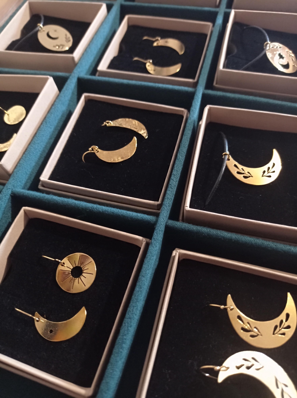 Dans mon atelier situé en Moselle, je fabrique des bijoux en laiton et en argent, au fil des saisons et de mes inspirations.