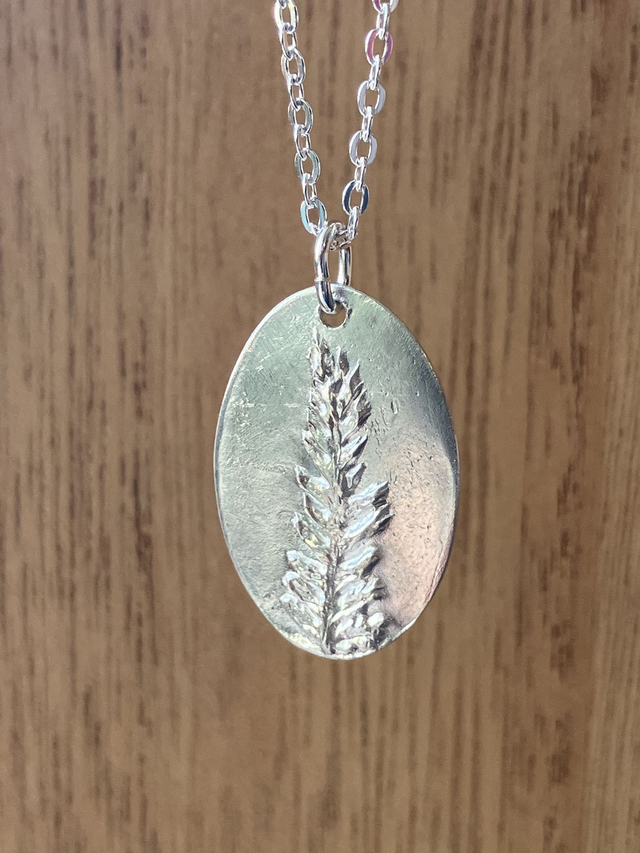 Ce collier a été réalisé à partir d'une feuille de fougère, cueillie lors d'une balade en forêt.