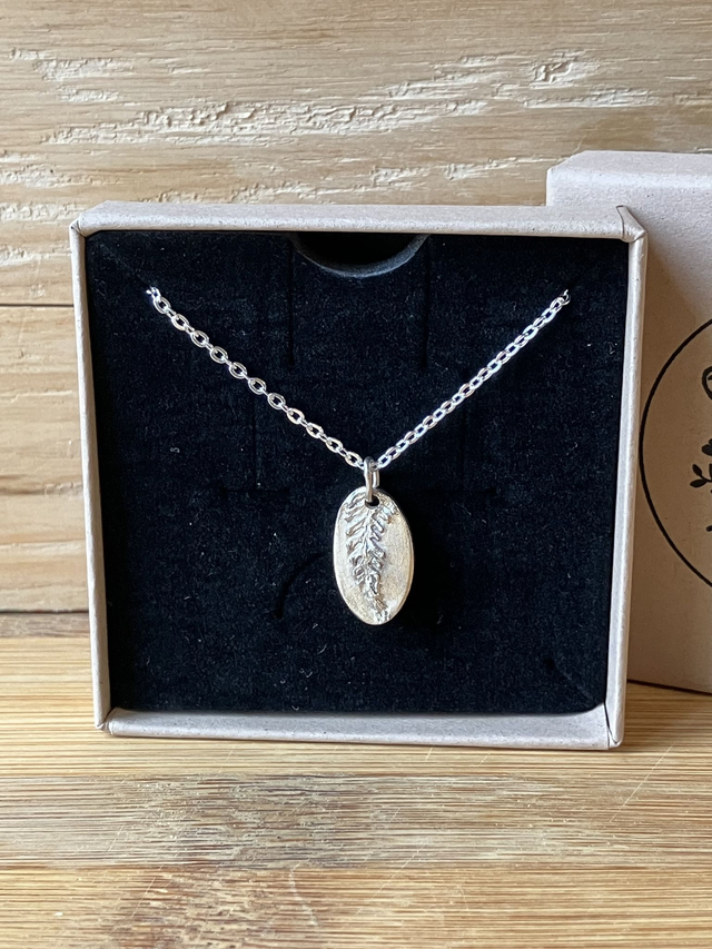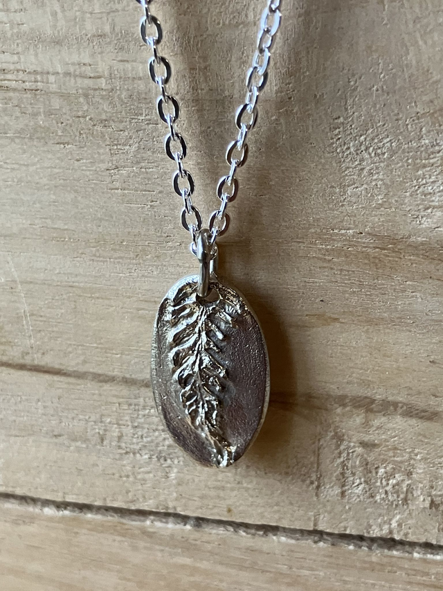 Ce collier a été réalisé à partir d'une feuille de fougère, cueillie lors d'une balade en forêt.